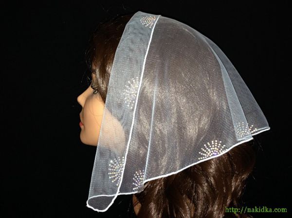| Светло- голубая фатиновая накидка с наклеенным перламутровым узором |
