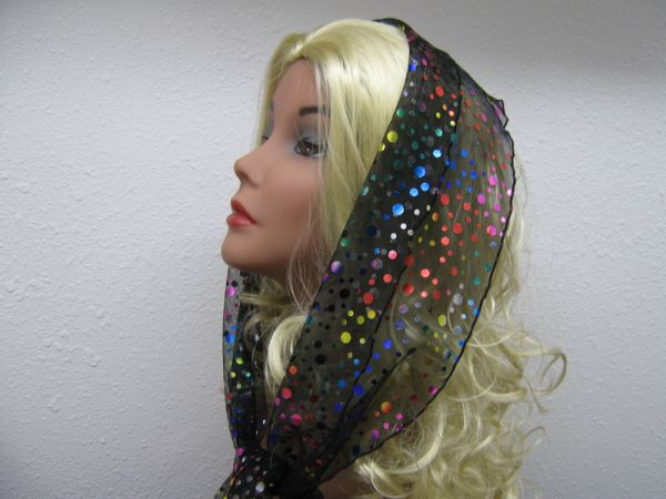 | Черный фатиновый шарф с разноцветными блестками и черным ободком |