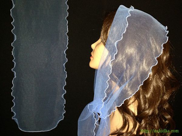 : Голубой легкий фатиновый шарф с волнистым ободком