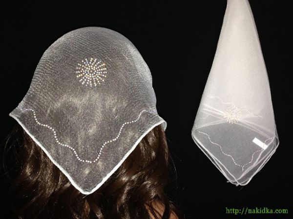| Белая однотонная нейлоновая косынка с наклееным блестящим узором |
