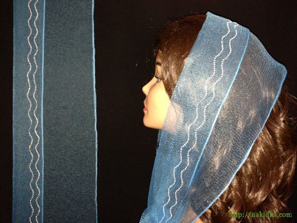 | Бирюзовый нейлоновый шарф с наклееным блестящим серебристым узором |