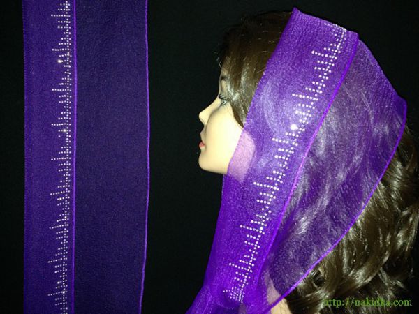 | Фиолетовый нейлоновый шарф с наклееным блестящим серебристым узором |