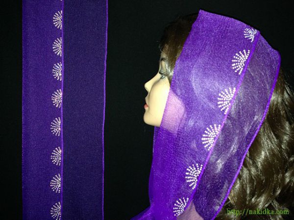 | Фиолетовый нейлоновый шарф с наклееным блестящим перламутровым узором |
