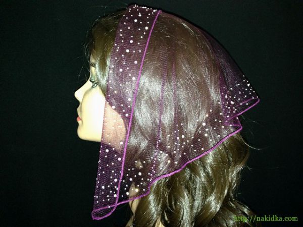 | Бордово-баклажановая легкая фатиновая накидка с наклееным по краям блестящим узором |