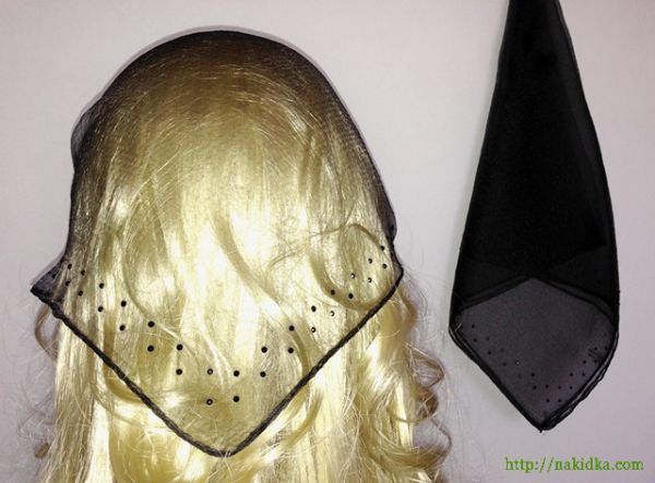 | Черная однотонная нейлоновая косынка с наклееными черными камушками по краям |