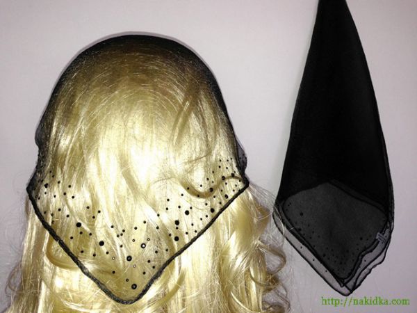 | Черная однотонная нейлоновая косынка с наклееным черным узором |