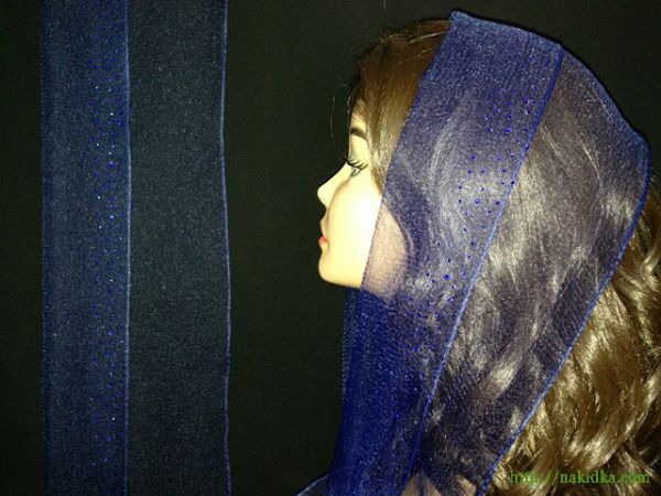 | Темно-синий нейлоновый шарф с наклееными по краю синими камушками |
