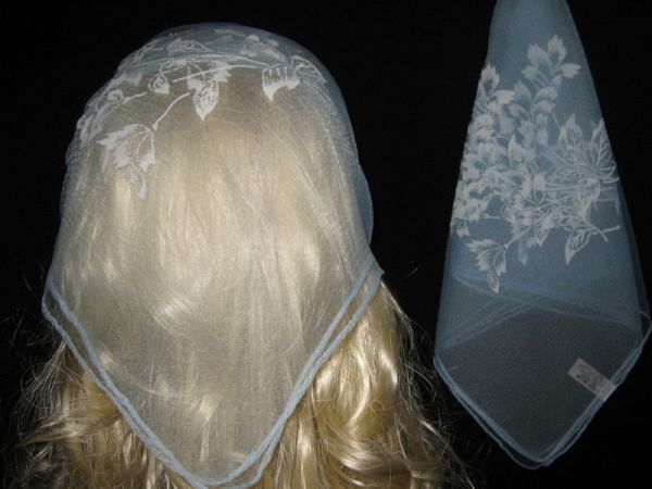 : Голубая нейлоновая косынка с белым рисунком