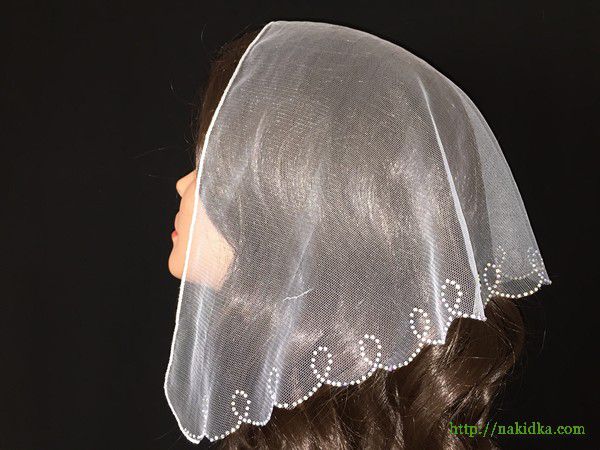 | Белая легкая фатиновая накидка с узором на задней кромке |