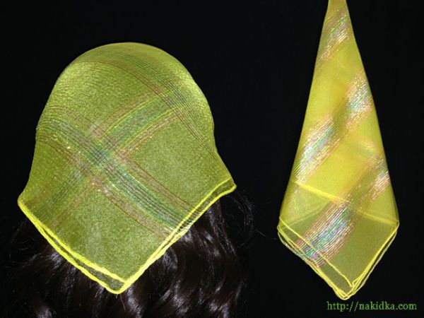 | Желтая однотонная нейлоновая косынка с радужной люрексовой полоской |