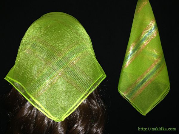 | Ярко-салатовая однотонная нейлоновая косынка с радужной люрексовой полоской |