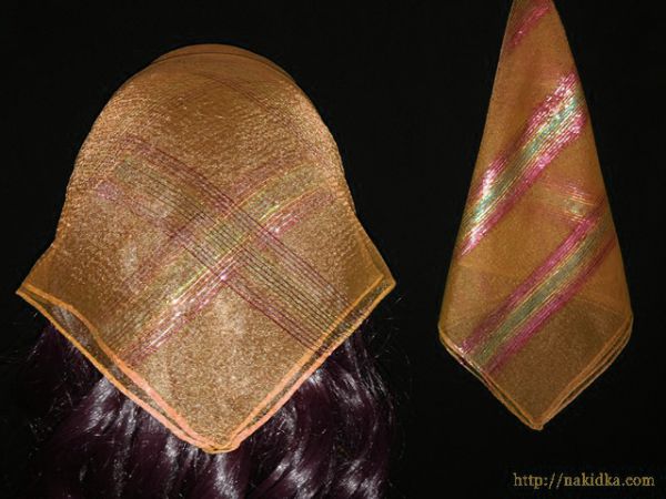 | Светло-коричневая однотонная нейлоновая косынка с радужной люрексовой полоской |