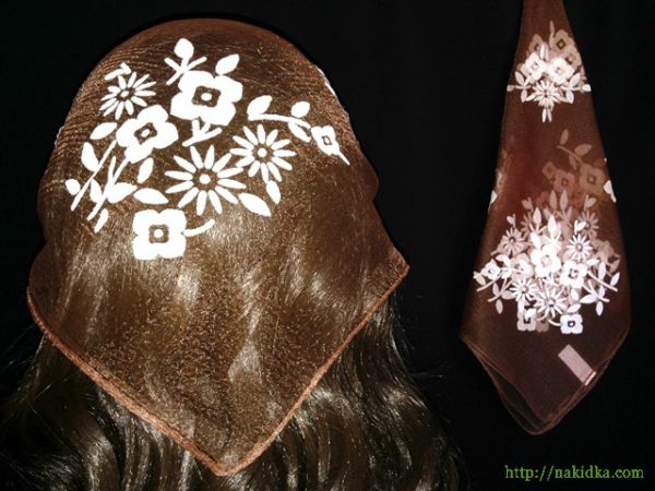 : Коричневая нейлоновая косынка с белым рисунком