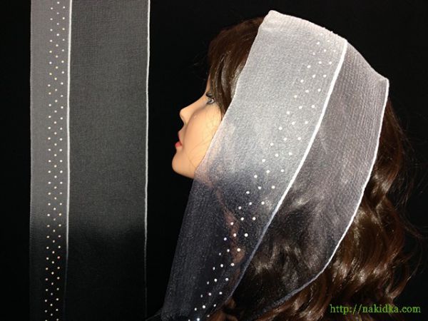 | Утененный бело-черный нейлоновый шарф с наклееными блестящими камушками |