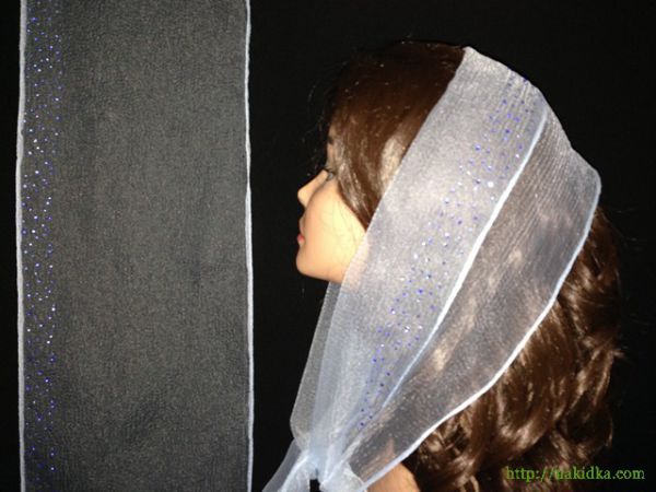 | Светло-голубой нейлоновый шарф с наклееными по краю синими камушками |