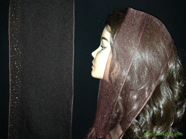| Темно-коричневый нейлоновый шарф с наклееными по краю коричневыми камушками |