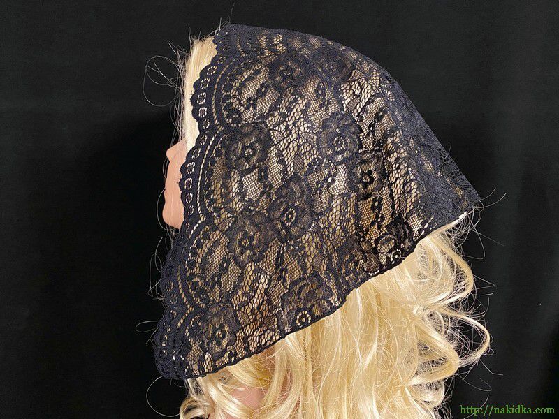 | Черная гипюровая стрейчевая накидка с узором с фигурной передней кромкой |