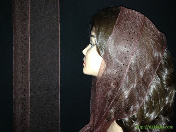 | Темно-коричневый нейлоновый шарф с наклееными по краю черными камушками |