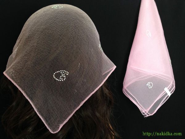 | Розовая нейлоновая косынка с наклееным блестящим узором |