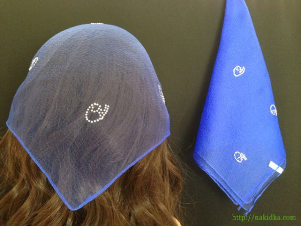Синяя нейлоновая косынка с наклееным блестящим узором