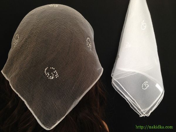 | Белая нейлоновая косынка с наклееным блестящим узором |