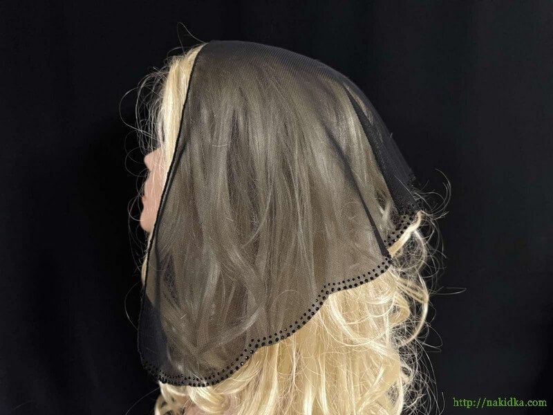 | Черная фатиновая накидка с наклееными черными камушками на задней кромке |