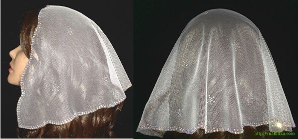 | Белая легкая фатиновая накидка с наклееным перламутровым узором |