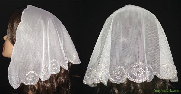 | Белая фатиновая накидка с наклееным перламутровым узором |