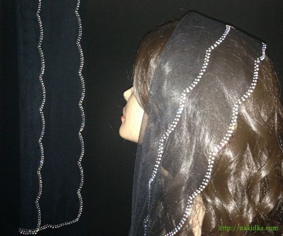 | Черный фатиновый шарф с наклееным перламутровым узором по краям |