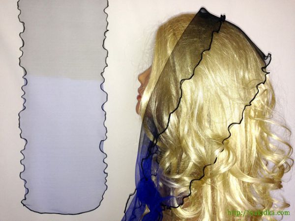 : Черный с синим легкий фатиновый шарф с волнистым ободком