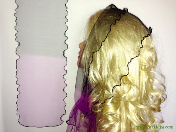 | Черный с фиолетовым легкий фатиновый шарф с черным волнистым ободком |