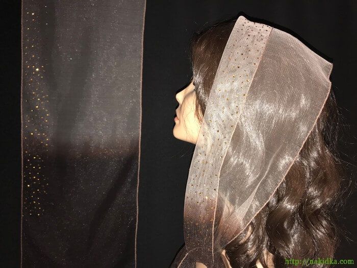 | Кофейный с коричневым легкий фатиновый шарф с наклееными золотистыми камушками |