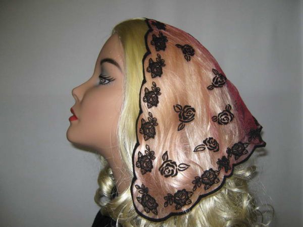 | Бордовая нейлоновая накидка с черным узором и черным ободком |