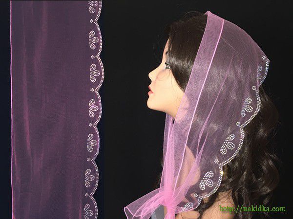| Розовый легкий фатиновый шарф с наклееным блестящим узором по вырезанному с одной стороны контуру |
