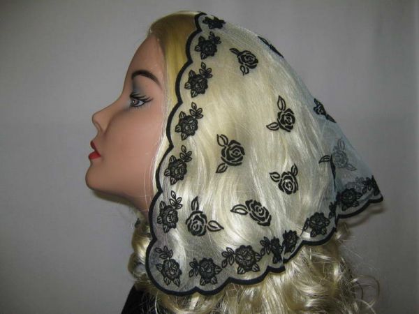 | Светло-голубая нейлоновая накидка с черным узором и черным ободком |