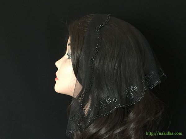 | Черная легкая фатиновая накидка с черным наклееным узором |