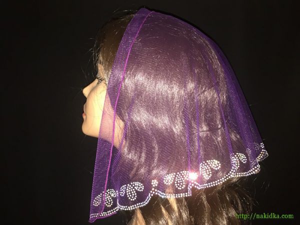 | Фиолетово-баклажановая накидка из легкого фатина с наклееным блестящим узором |