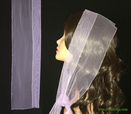 | Светло-фиолетовый легкий фатиновый шарф с наклееным перламутровым узором по контуру |