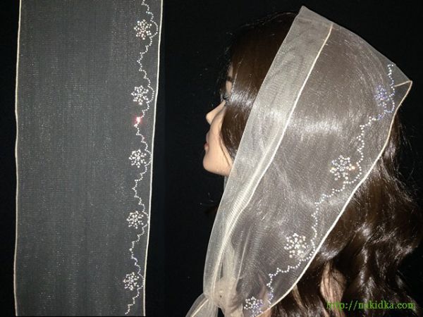 | Светло-кофейный легкий фатиновый шарф с наклееным блестящим узором |