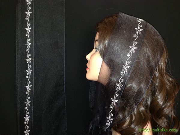 | Черный нейлоновый шарф с наклееным блестящим серебристым узором |