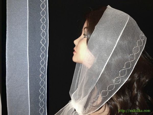 | Белый нейлоновый шарф с наклееным блестящим перламутровым узором |