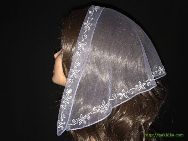 | Серо-фиолетовая легкая фатиновая накидка с наклееными блестящими узорами по краям |