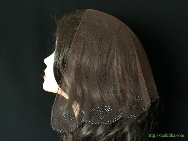 | Темно-коричневая легкая фатиновая накидка с наклееным черным узором |