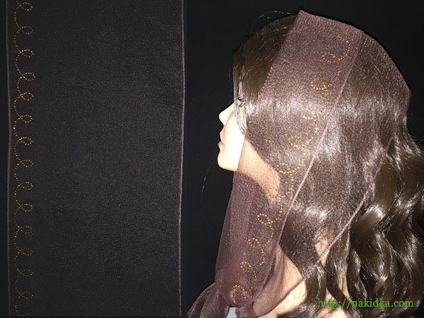 | Темно-коричневый нейлоновый шарф с наклееным золотистым узором |