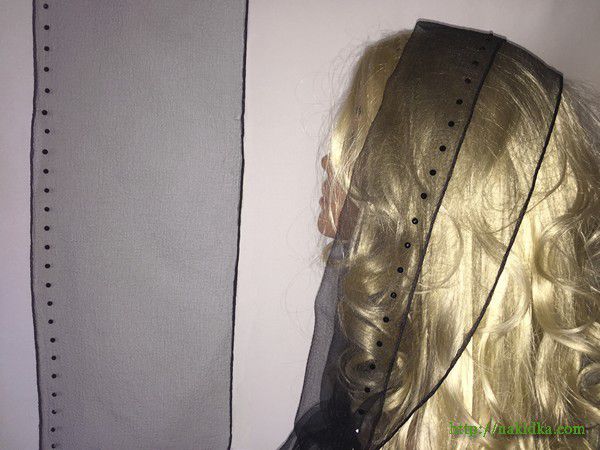 | Черный нейлоновый шарф с наклееными по краю черными камушками |