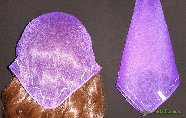 | Фиолетовая однотонная нейлоновая косынка с наклееным блестящим узором |