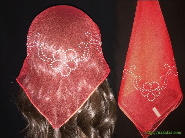| Красная однотонная нейлоновая косынка с наклееным блестящим узором |