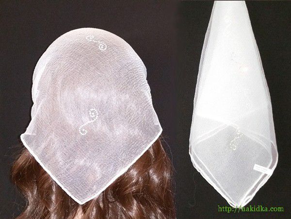 | Белая однотонная нейлоновая косынка с наклееным блестящим узором |
