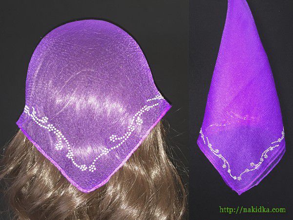 | Фиолетовая однотонная нейлоновая косынка с наклееным блестящим узором |