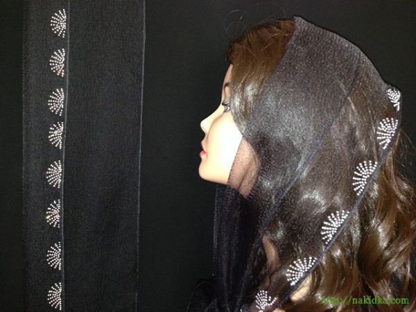 | Черный нейлоновый шарф с наклееным блестящим перламутровым узором |